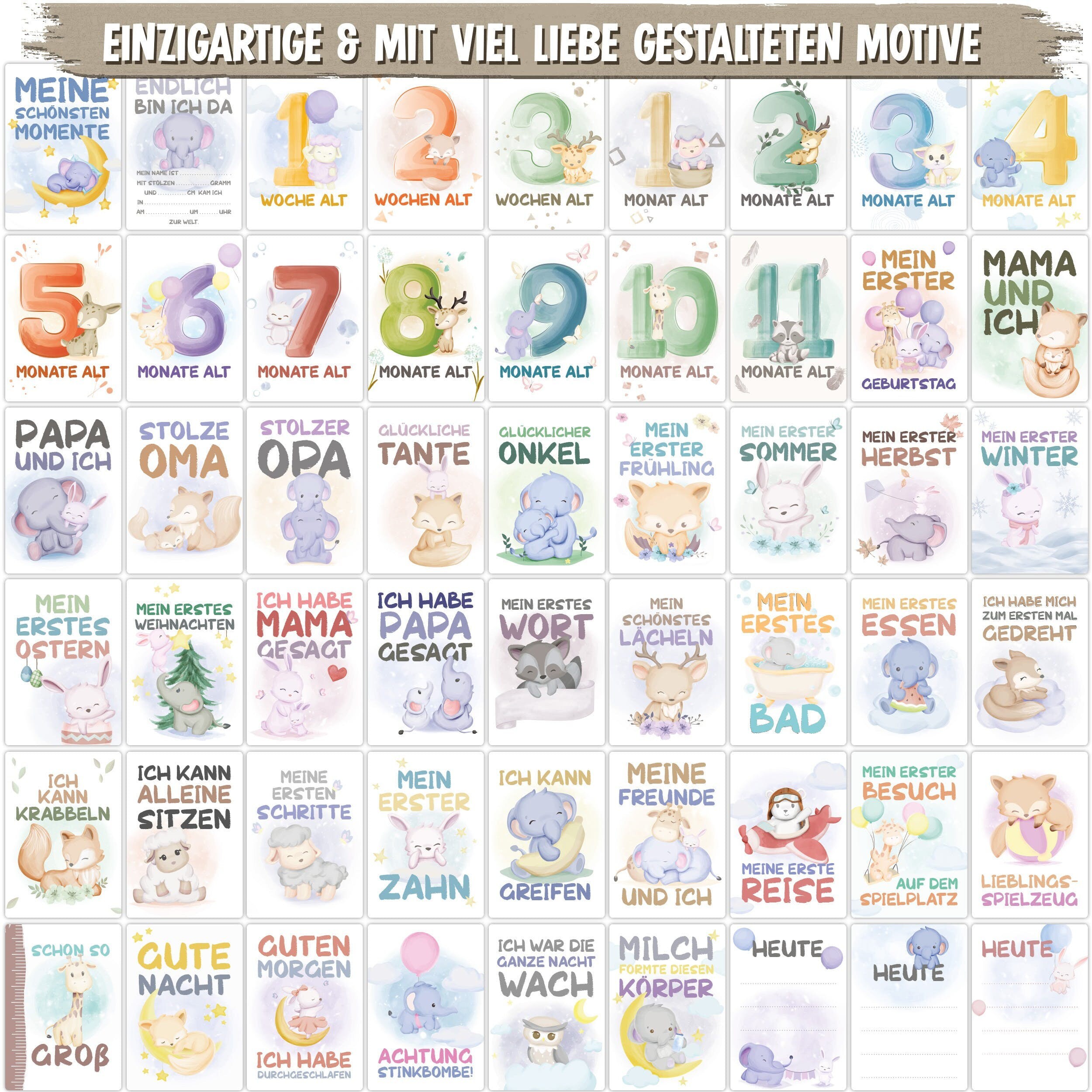 Baby Meilensteinkarten im Set sind die Ideale Geschenkidee zur Geburt, Babyparty oder zur Schwangerschaft.