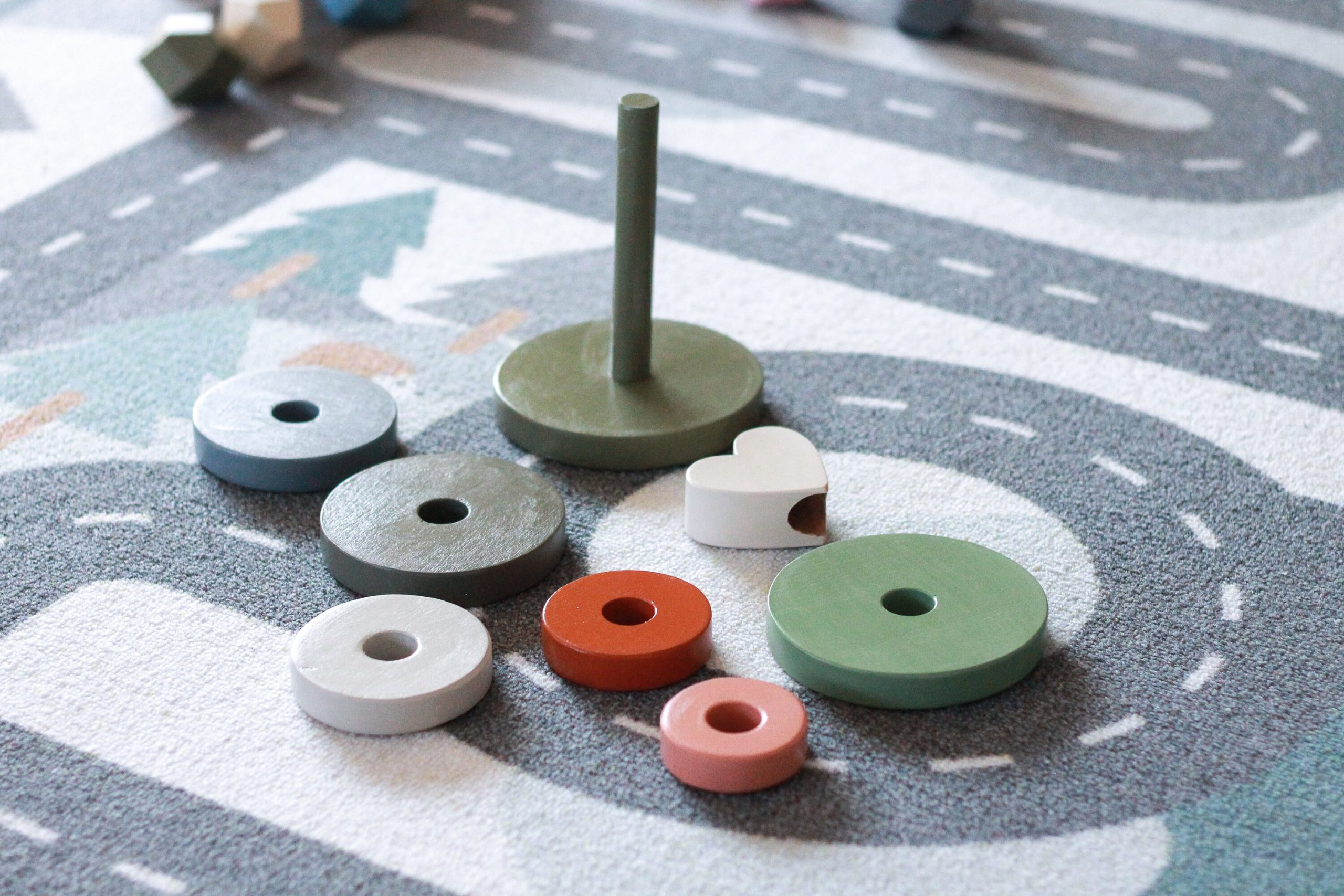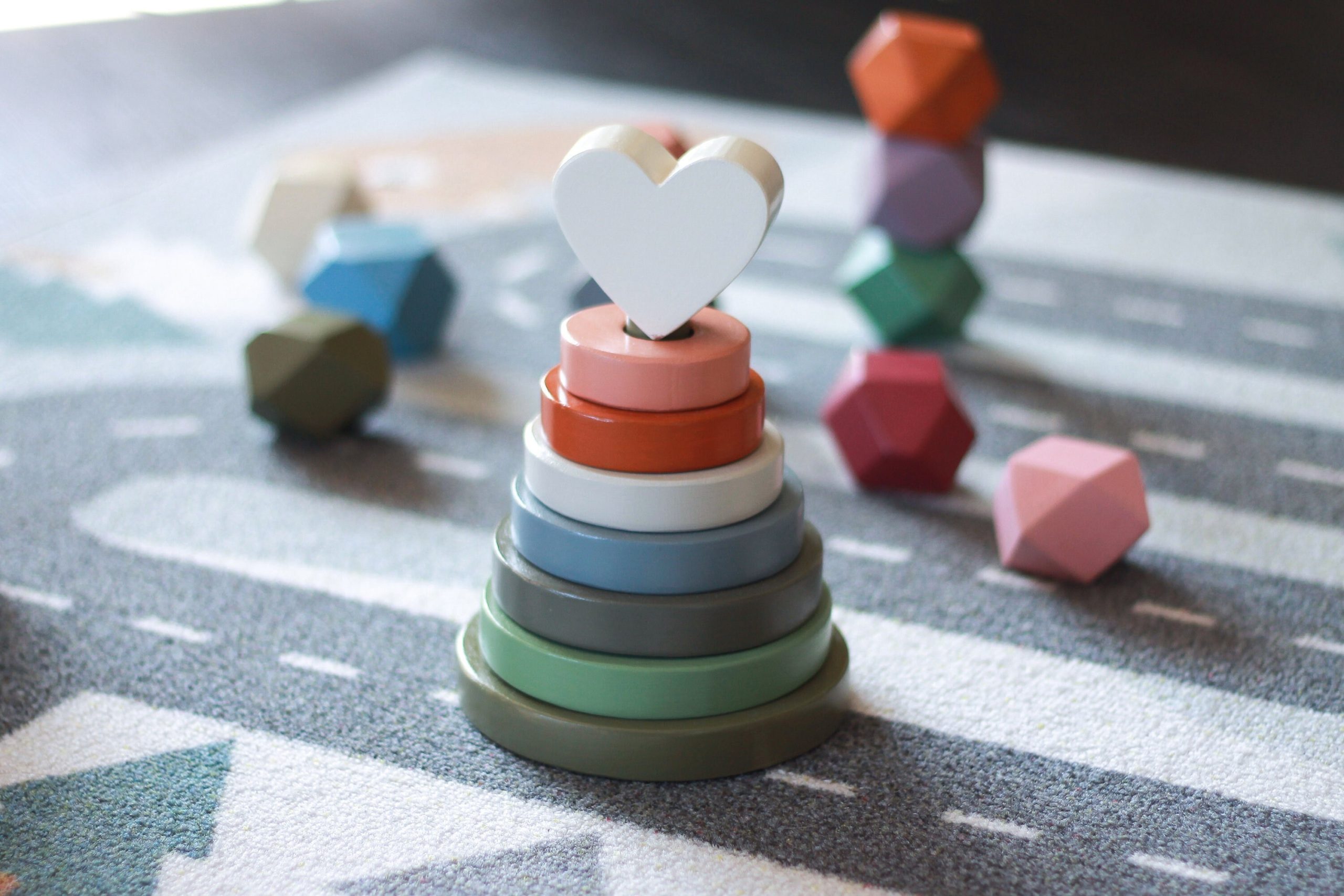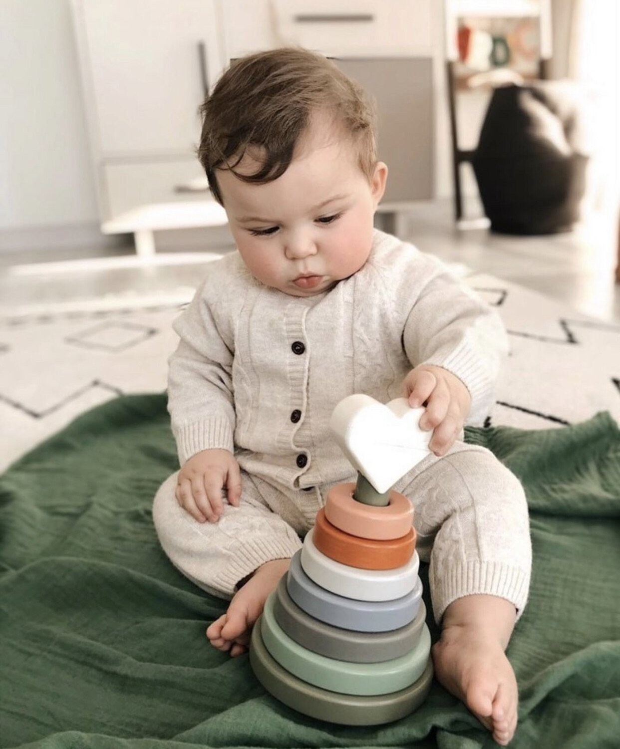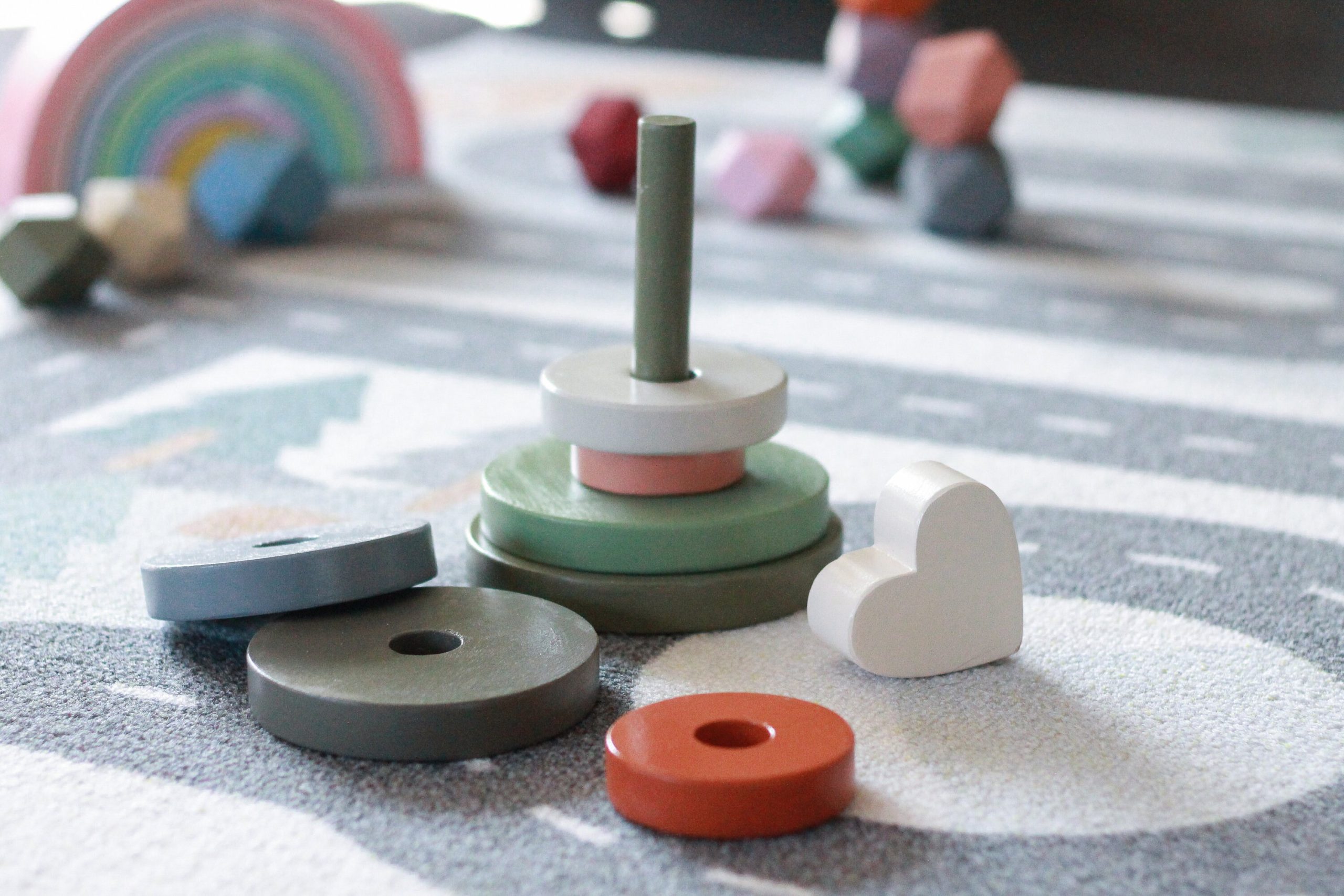 Dieser atemberaubende Herz-Stapler in erdigen Tönen ist die perfekte Ergänzung für jedes Kinderzimmer, auch nur als Dekoration. Er fördert die Auge-Hand-Koordination, die Entwicklung der Feinmotorik und die Unterscheidung der Körpergröße. Kinder werden es genießen, Ringe auf dem Pfosten zu platzieren und sie schließlich in die richtige Reihenfolge zu bringen.