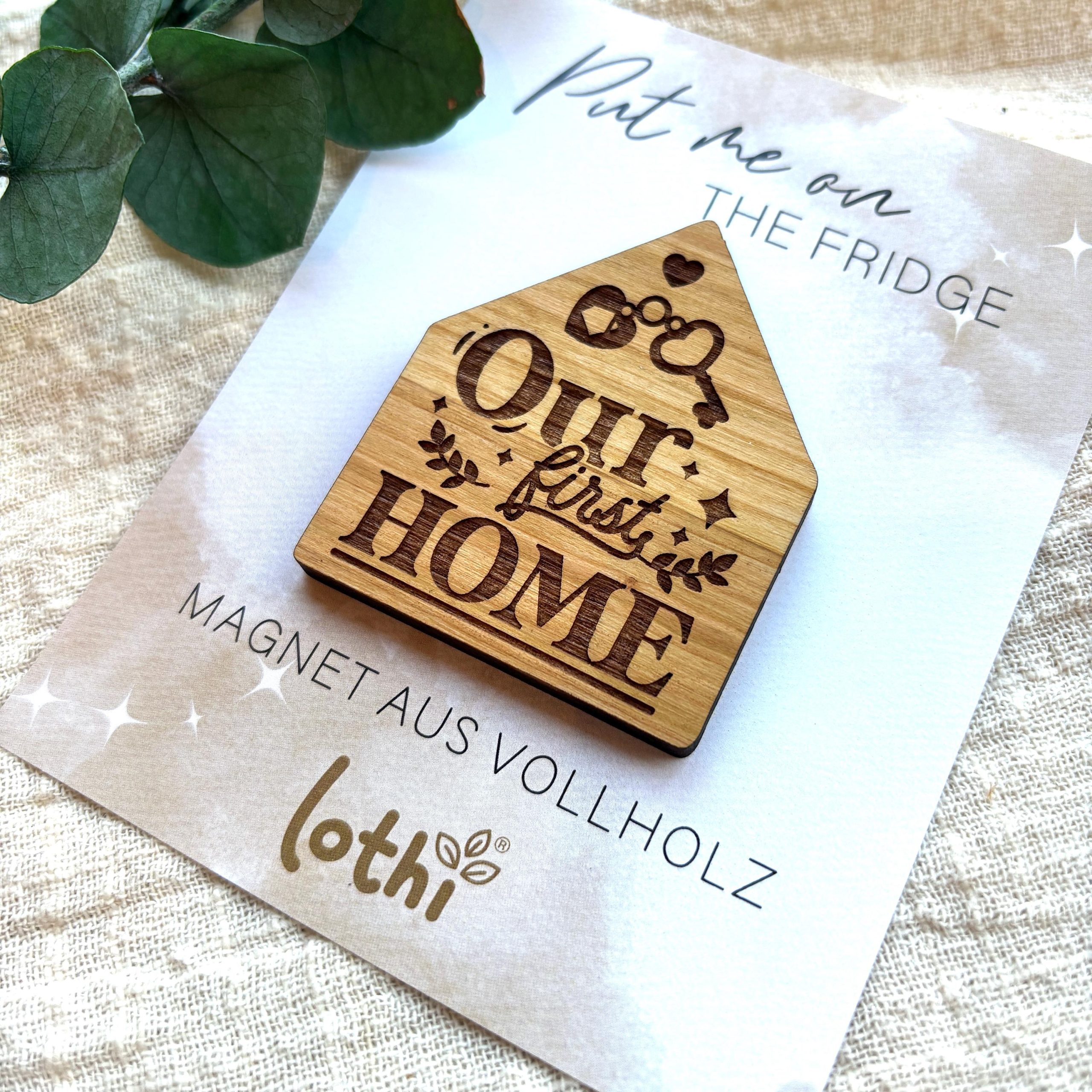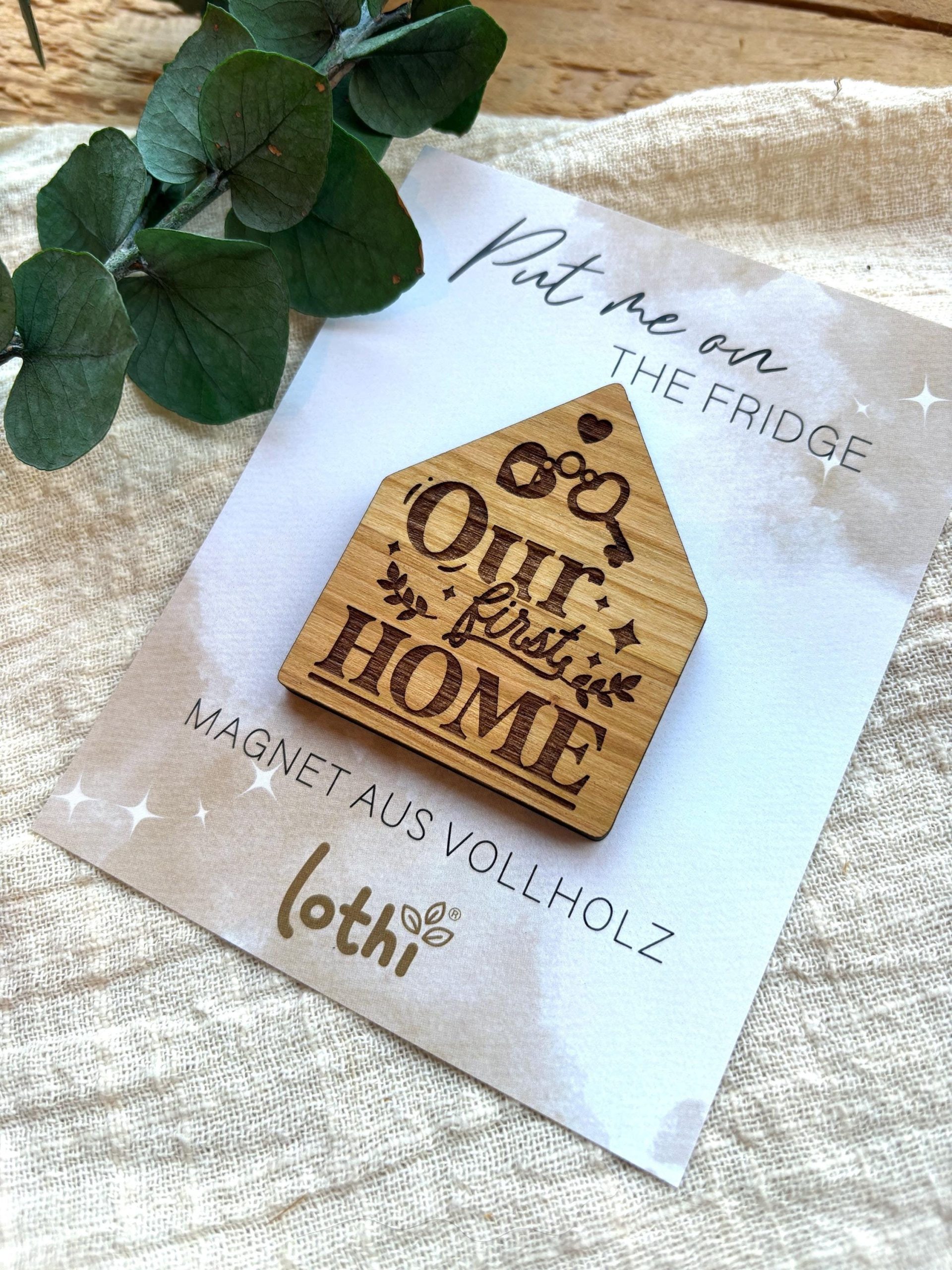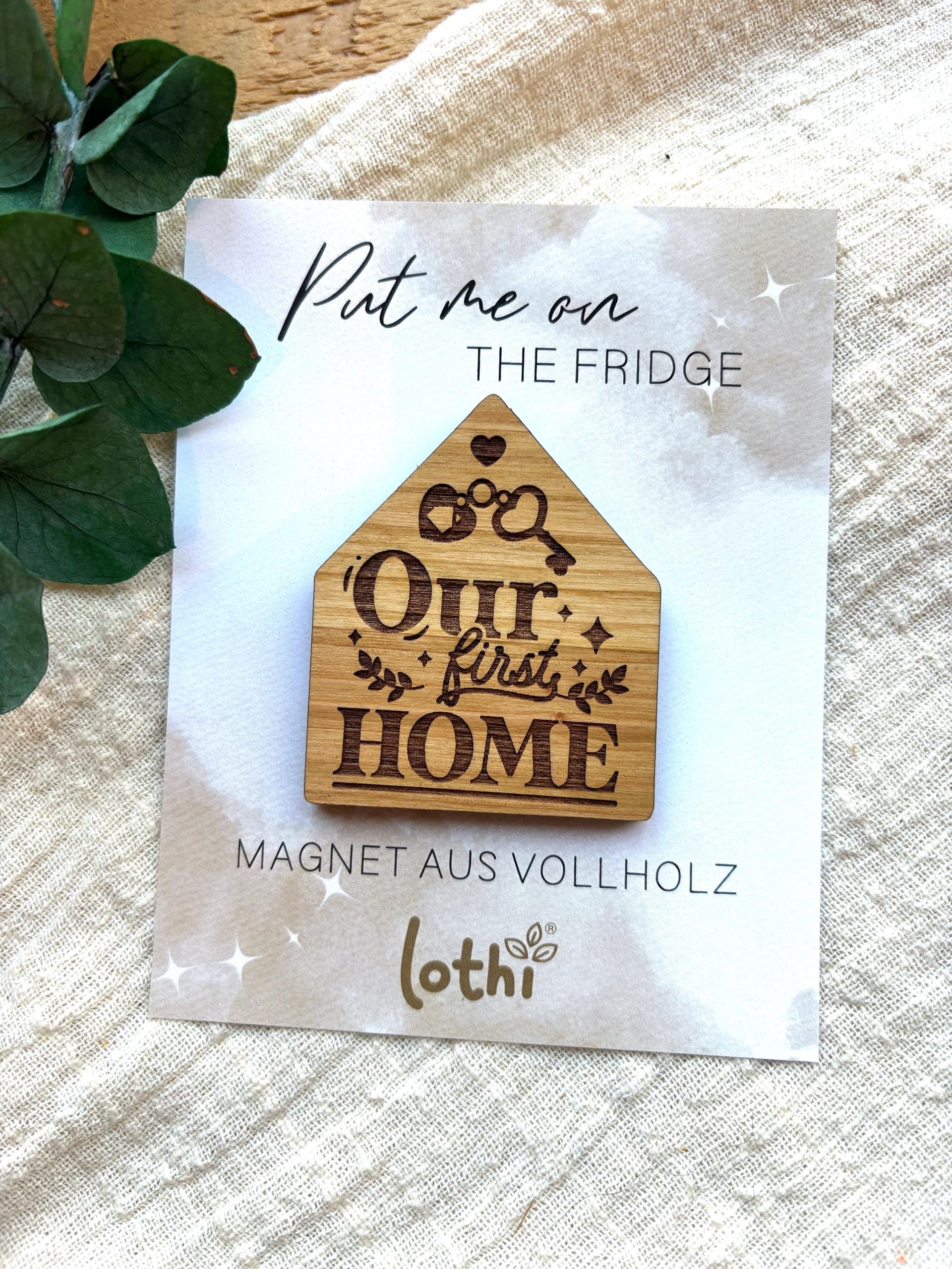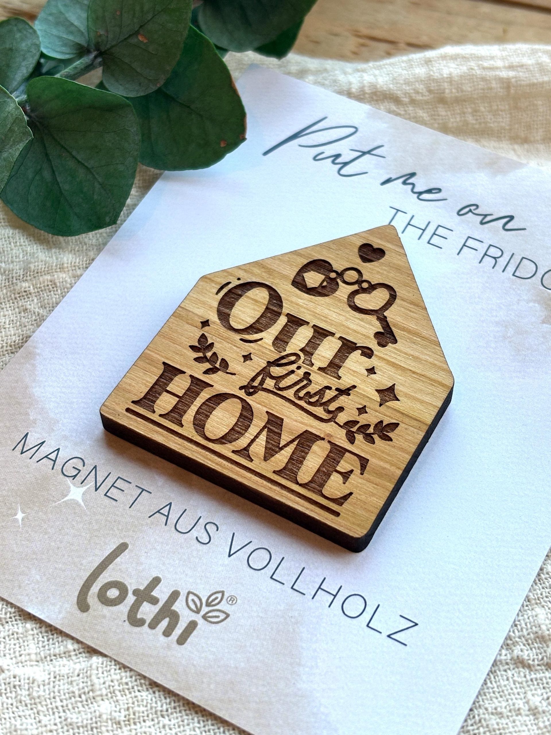 Kühlschrankmagnet aus Vollholz – „Our First Home“ 🏡❤️